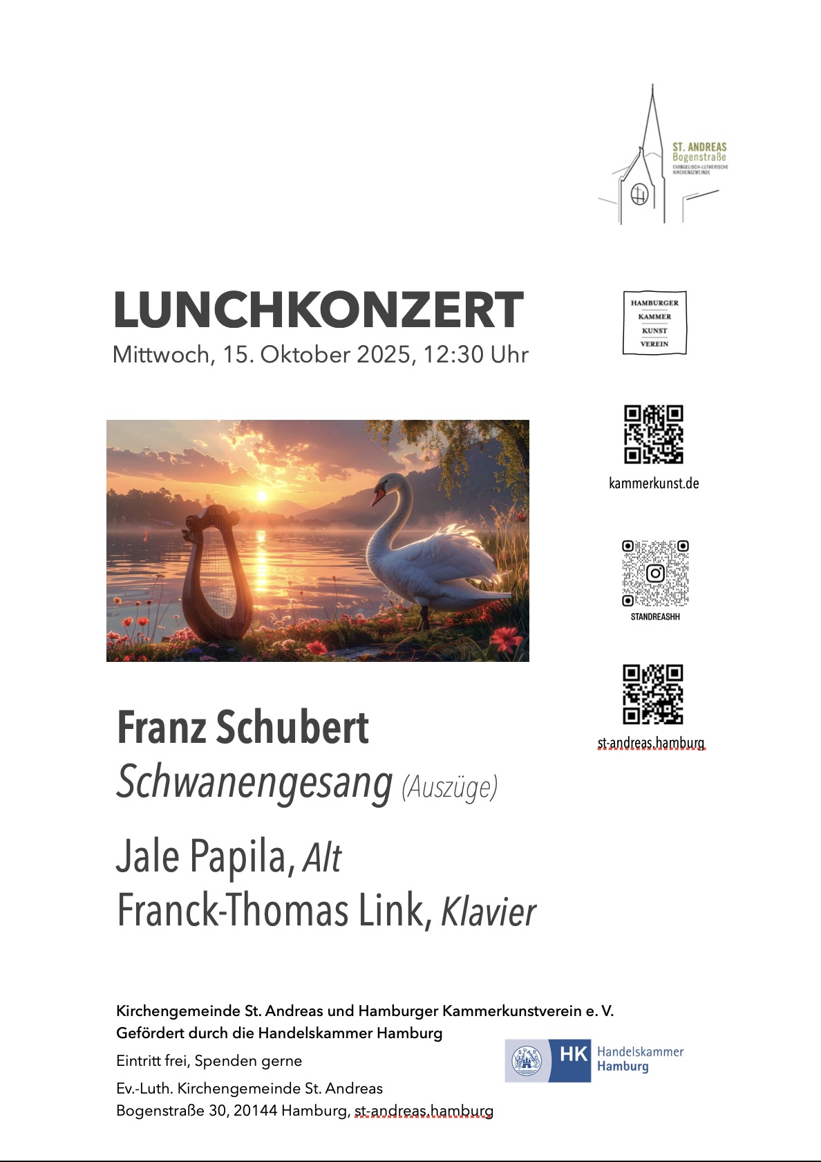 Mittwoch, 15. Oktober, 12:30 Uhr – Jale Papila, Alt, und Franck-Thomas Link, Klavier:
